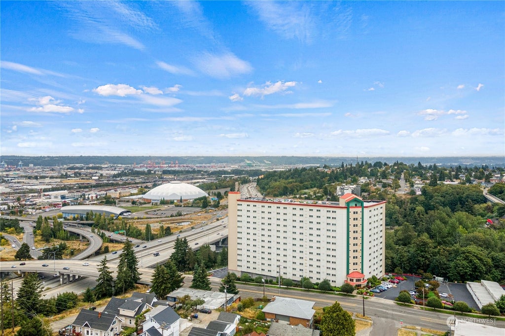 ** $30,000 PRICE IMPROVEMENT ** Revel in the breathtaking views that span Mt. Rainier, the Sound, & the vibrant cityscape of Tacoma from this 7th story condo. Welcome to Pacific Tower Condo, the secured building is centrally located w/easy access to I-5 & local amenities. Step into a beautifully appointed living space, flooded w/natural light from the expansive windows, allowing the stunning scenery to be part of your everyday. The condo includes two generous bedrooms & 1.75 stylishly designed baths. The primary suite is a true retreat, featuring dual closets that provide ample storage space. Enjoy the fresh air & sweeping views from your private balcony, a delightful spot for morning coffee & evening sunsets. Gym & Community Room