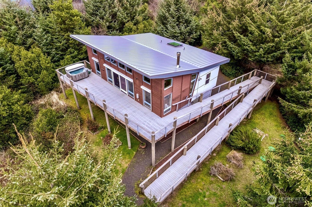 Seattle Architect-Designed Oceanfront Retreat with Sweeping Views. Stunning, nightly-rentable retreat w/expansive views & unforgettable sunsets. Thoughtfully designed & furnished, this turnkey home features reclaimed porthole windows, spruce slab wall accents, dual pocket doors & new roof/skylight. Accessibility is built in w/a wheelchair-friendly ramp & elevator. Boasting 3 bedrooms—including a lower-level bunk room w/built-ins—2nd-floor living area maximizes the ocean views. The kitchen centers around a copper island illuminated by glass buoy lights & framed by a wall of windows. Enjoy relaxation in the hot tub or versatility in twin garage bays w/dual doors for indoor/outdoor fun. A perfect blend of charm, convenience, & privacy!