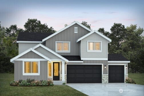 New home in prime location in Sumer-Bonney Lake School Dist. Modern style & functional design built by Local builder, JK Monarch. Open-concept layout features 9’ ceilings, LVP flooring, modern linear electric fireplace has tile surround & mantle. Gourmet kitchen boasts 3cm quartz countertops, full-height tile backsplash, 36” soft-close shaker cabinets, large island w/pendant lighting & premium Whirlpool appliances, including a 30” induction range & SS canopy hood. Primary ensuite w/freestanding soaking tub, tiled shower & quartz countertops. Outdoor covered living w/pine ceiling. Energy-efficient features include a heat pump w/AC, hybrid water heater, LED lighting & EV charger pre-wire. PRESALE, pics are not of actual home.