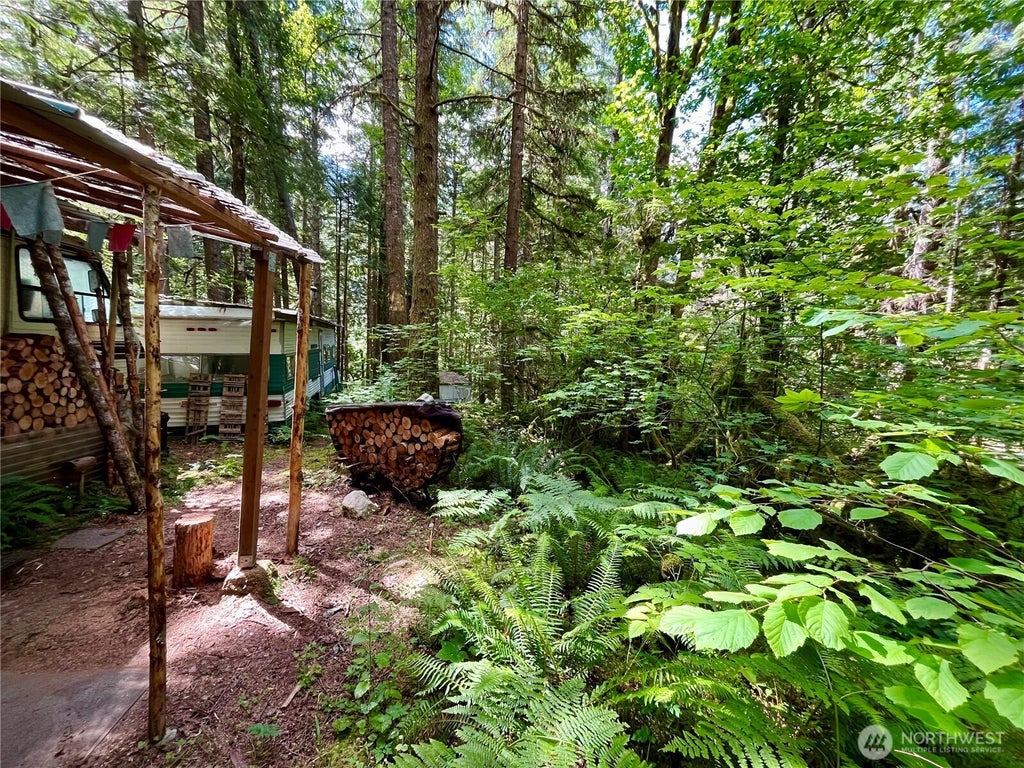 Now is your chance to own 1/3acre offgrid living on Cascade River Rd. Several buildings gives a launch pad for new design or set up camp with the wood stove warmed buildings & outdoor kitchen with running water. Surrounded by mature trees, it is sheltered from the road & any neighbors. A seasonal creek divides this property from the next. Avid hikers enjoy the proximity to Lookout Mountain, Hidden Lake & Cascade Pass Trails; close enough to hike from this base camp! Homey touches combined with utility make this a great spot to start offgrid life. RV, 5th Wheel, Shed, Composting toilet, Metal lockable shed, 5 cords chopped/dry wood,two wood-burning stoves, outdoor fire pit, 4 burner stove, propane tank, outdoor double sink & so much more.