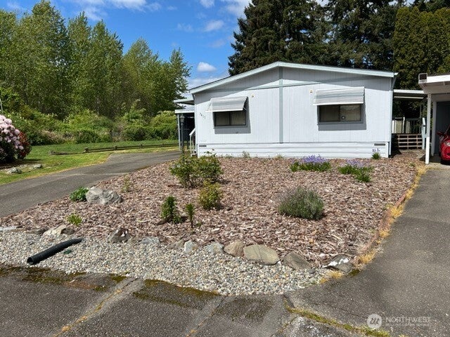 This home has A/C in a 55+ Development! Welcome to this Open Concept home with $40,000 in upgrades to include a Heat Pump, Water Heater, New Ramp, New Water lines under the home. This spacious residence offers comfortable living with Vaulted ceilings, sky lights, separate office area, living room and family room, Primary bedroom is on one end of the home with large bath. Beautiful large open kitchen with white cabinets, breakfast bar, new sink, stove and fan. Newer Appliances stay Washer, Dryer, Stove, Refrigerator, and Dishwasher. Large grass area next to the home rarely used, maintained by the park for privacy. Landscaped yard with 3 storage units. This home is move-in ready for you to enjoy. Please contact Park Manager for Approval.