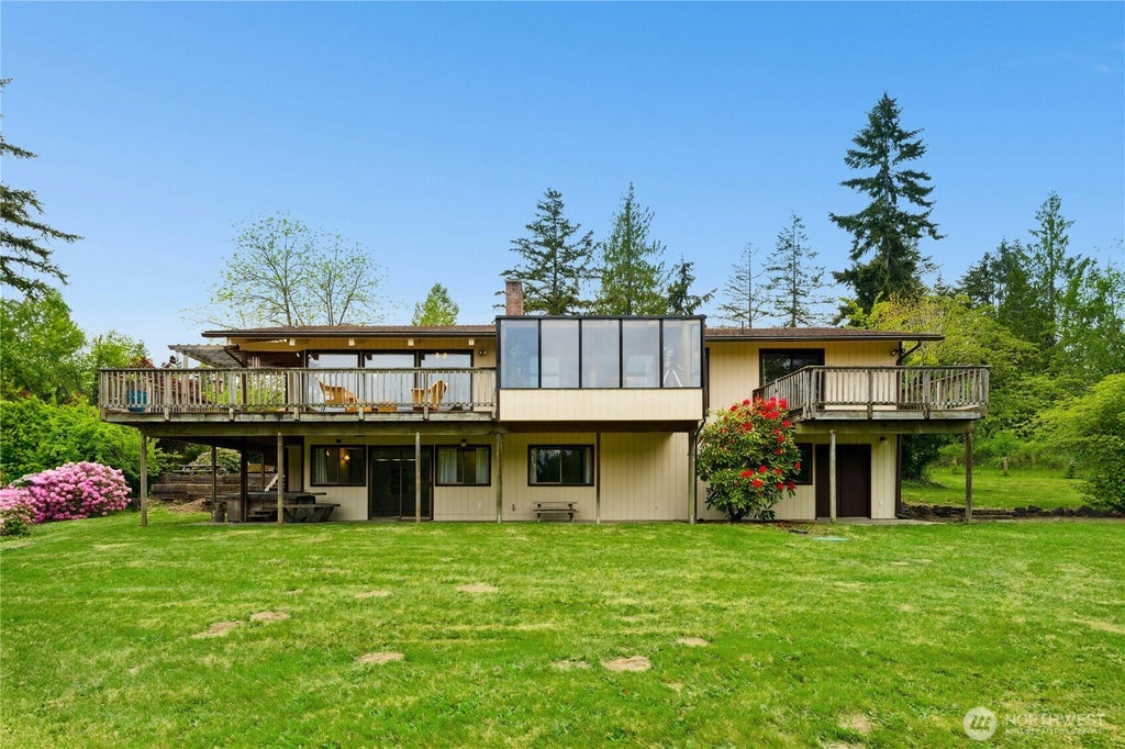Incredible custom home with beautiful partial summer and full winter views of Mt. Rainier. Set on 1 acre at the end of the road, and surrounded by large homesites, it feels like it goes on forever. There are many custom features you won't find is similarly priced homes like the open beam vaulted ceilings and floor to ceiling wood fireplace in the kitchen/family room. The large living room with stone fireplace and adjacent sun room overlooks the acreage and Mt Rainier views. There are 4 bedrooms + den/extra finished room, a massive rec room with fireplace and a huge workshop/storage room. Tons of square footage for the money.