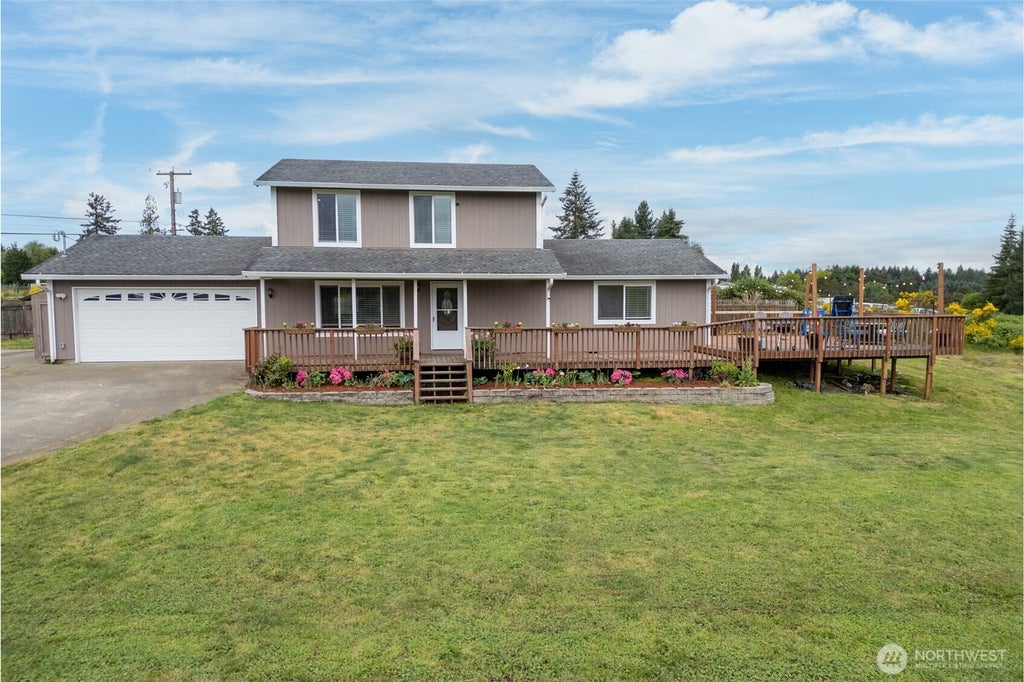 Rare find! This stunning 3 bed/2 bath home sits on 5.26 flat, fully fenced acres in the Tumwater School District. Inside, enjoy a beautifully remodeled kitchen with quartz counters, tile backsplash, SS appliances, and a large island. New LVP flooring, millwork, interior/exterior paint, and vaulted ceilings enhance the spacious living room. The remodeled bathrooms shine with custom tile work. The massive primary suite is a true retreat with a custom-remodeled bath and a huge walk-in closet with built-ins. Outside offers a wraparound deck, shop/barn, lit sports court, and 2-car garage—perfect for recreation, animals, or hobbies!