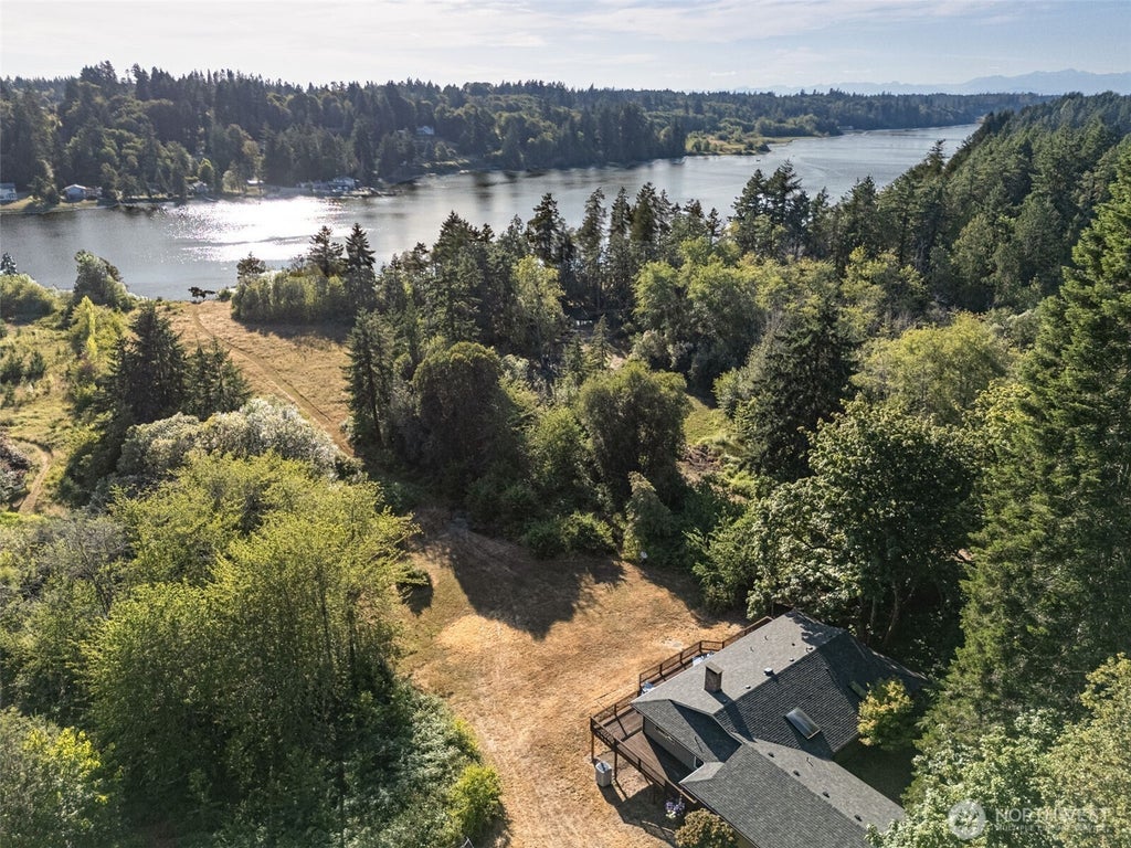 Henderson Inlet Water-view on 5 acres with no HOA, this 3312sqft Johnson Point property has it all! Next door to 110acres of habitat conservation protected lands, enjoy access to 235ft of saltwater beach & west-facing wraparound deck for dreamy sunsets. Vintage statement stone fireplace, sunken living room & 3 main floor bedrooms including primary suite with deck access. The daylight basement brings flexibility with separate bedroom, bath, living space & extra storage rooms for multi-gen living, giving guests their own domain or rental income options. A level drive means easy access for everyone while the heat pump keeps you cool. Garden space, fruit trees, future sport court pad & space to grow your water-view lifestyle retreat!