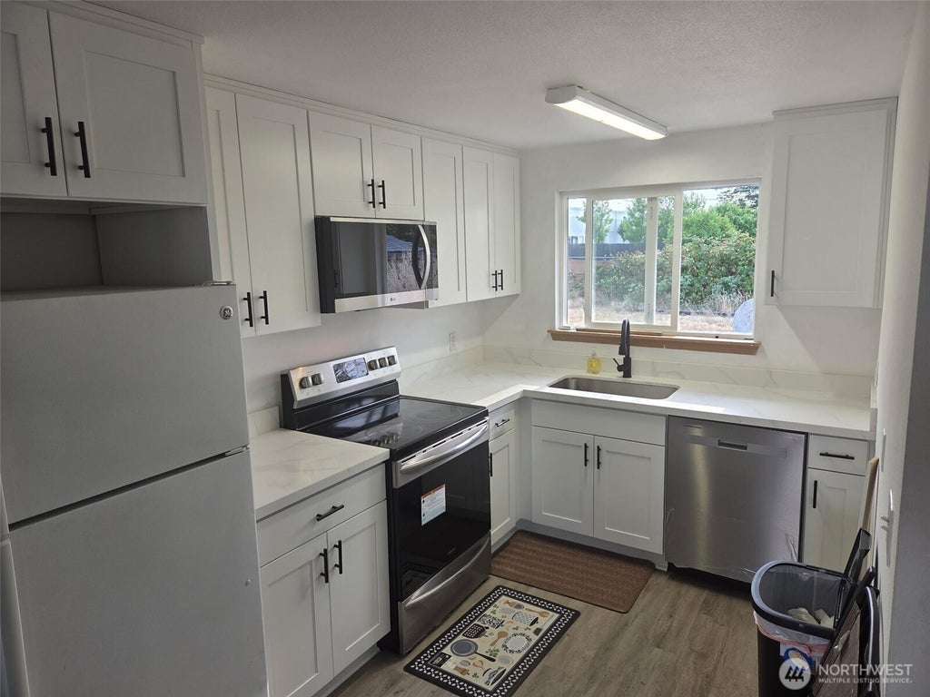 800 sq ft 2 bedroom 1 bath unit. Newly remodeled kitchen and bathroom and living room. Large fully fenced front, side and back yard with a shed. New roof 2022. Washer and dryer are in the unit. Private quiet dead end street located in the great Lakewood neighborhood. Close by I5 and SR512 and nearby shopping. Requirements are online application after viewing. Professional fulltime employment, 3 months paystubs. Background check, credit check, great rental history. No evictions, No criminal history, no housing vouchers. pets allowed under 50 lbs. Move-in requirement is first, last, $500 deposit and potential pet fee.