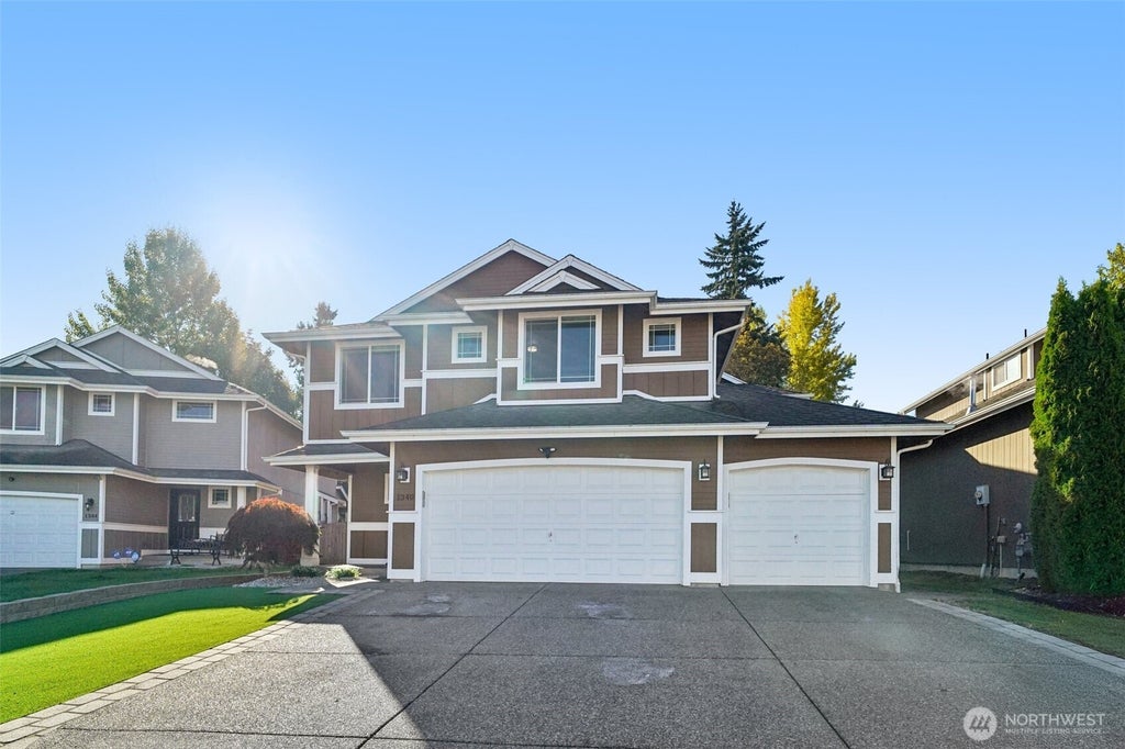 Step into this stunning home featuring an open, light-filled layout designed for comfort and versatility. The modern kitchen shines with shaker cabinets, stainless steel appliances, ample built in storage, and plenty of counter space. Enjoy a spacious primary suite with a luxurious 5-piece bath and walk-in closet. French doors open to a flexible den, office, or 6th bedroom, with three additional bedrooms and a full bath upstairs. The main level includes a guest bedroom, full bath, and convenient laundry room. A fully enclosed sunroom leads to the large backyard with a paved patio, basketball hoop, and a low-maintenance turf front yard plus a 3-car garage. Move in ready! Carpet on stairs to be replaced w/same flooring as remainder of home.