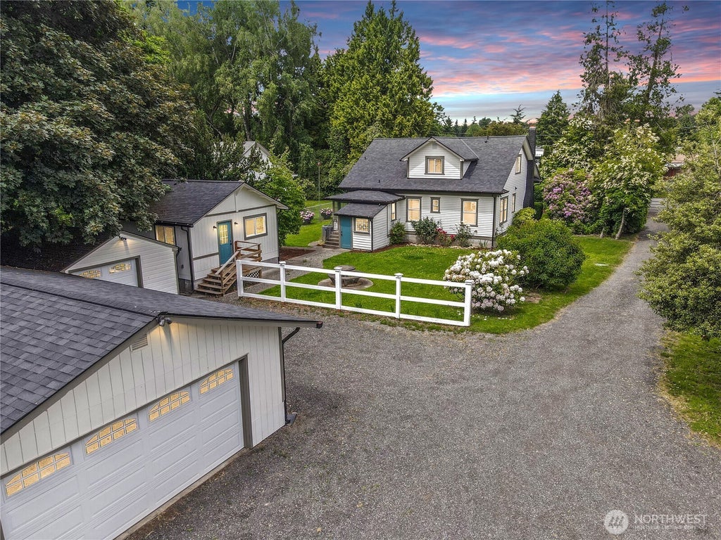 This charming farmhouse offers two living spaces, including a detached studio with a kitchen and ¾ bath. The main home features tall ceilings, built-ins, a formal dining room, and 4 bedrooms. Sitting on nearly an acre, it’s ideal for RVs, boats, or hobby farm dreams. Located in the Puyallup School District, you’ll enjoy peaceful country living just minutes from freeways, shopping, and dining. Updates include a new roof, all-new electrical, high-efficiency furnace, updated panel, HVAC ductwork, gutters, well pressure tank, and fresh paint. Refinished hardwood floors and LVP complete the interior. The fully fenced property also includes a finished storage shed, two-car garage, and single-car garage.